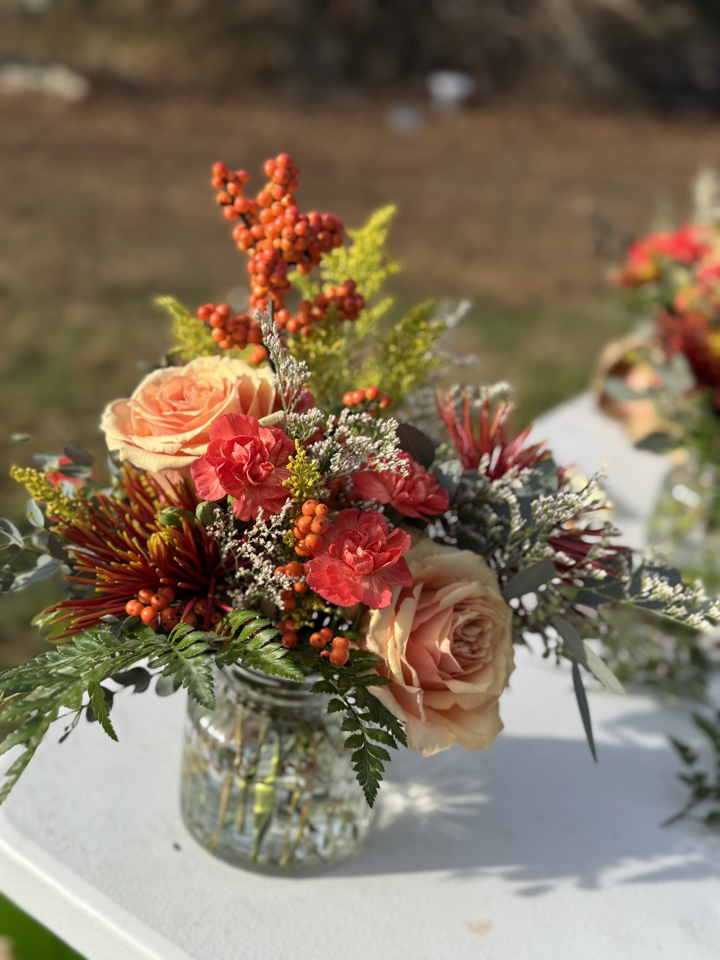 Keep in mind, the growing season runs approximately mid-March - October of each year for flowers grown on my farm. In November and December, I have beautiful greenery, berries and dried flowers and dried citrus that always look beautiful in centerpieces! If you are looking for floral centerpieces in the months of November - mid-March, please know that I can order in flowers to fill your need.